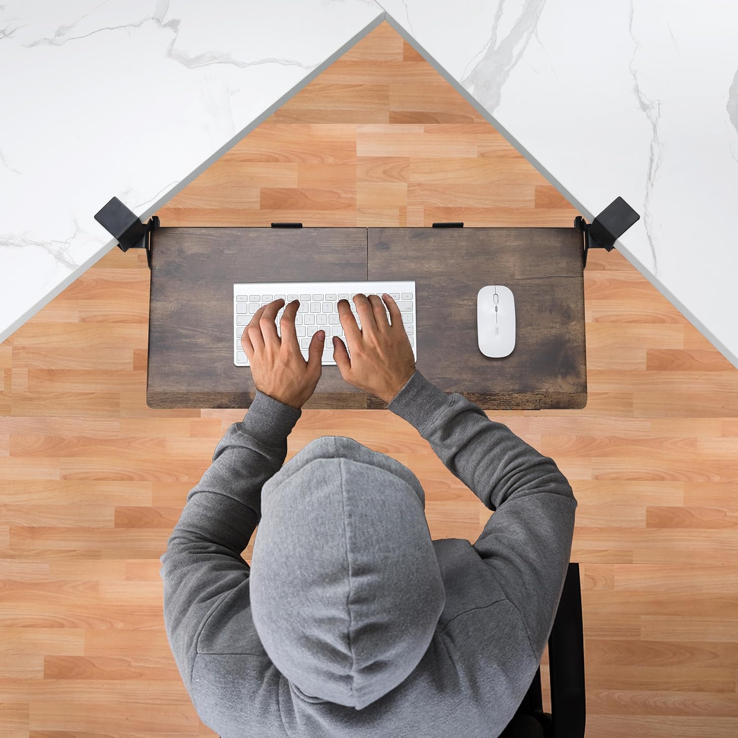 Introducing the Ergonomic Corner Keyboard Tray, a sleek and practical solution for maximizing your workspace efficiency. This under-desk keyboard tray is designed to fit perfectly in the corner of your L-shaped desk, providing you with a comfortable and ergonomic typing experience. The keyboard tray features a 180° adjustable C clamp, allowing you to customize the…