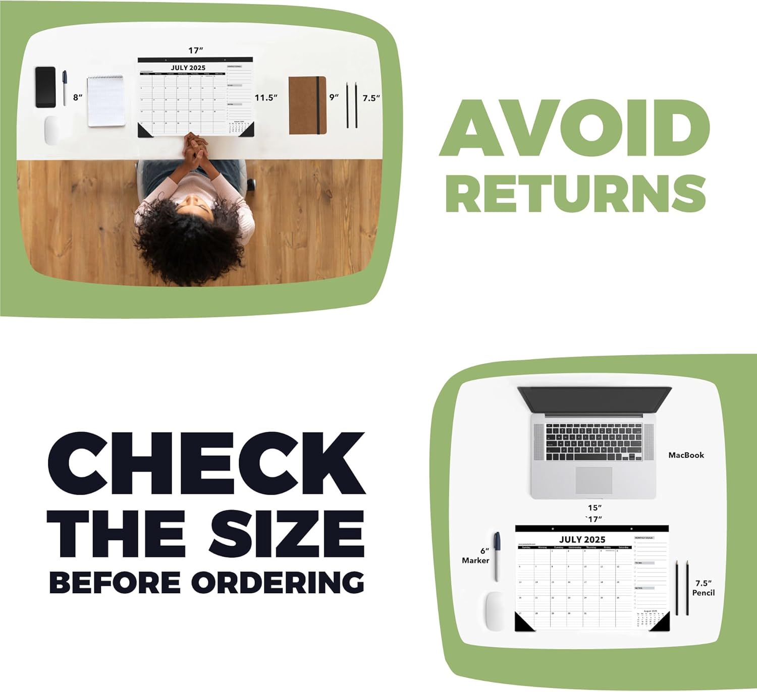 Sproutbrite 18 Month Desk Calendar 17″ x 11.5″ Medium Size Desktop Monthly Planner with To-Do List and Notes, Home, Office School Desk Calendar (July 1 PACK)